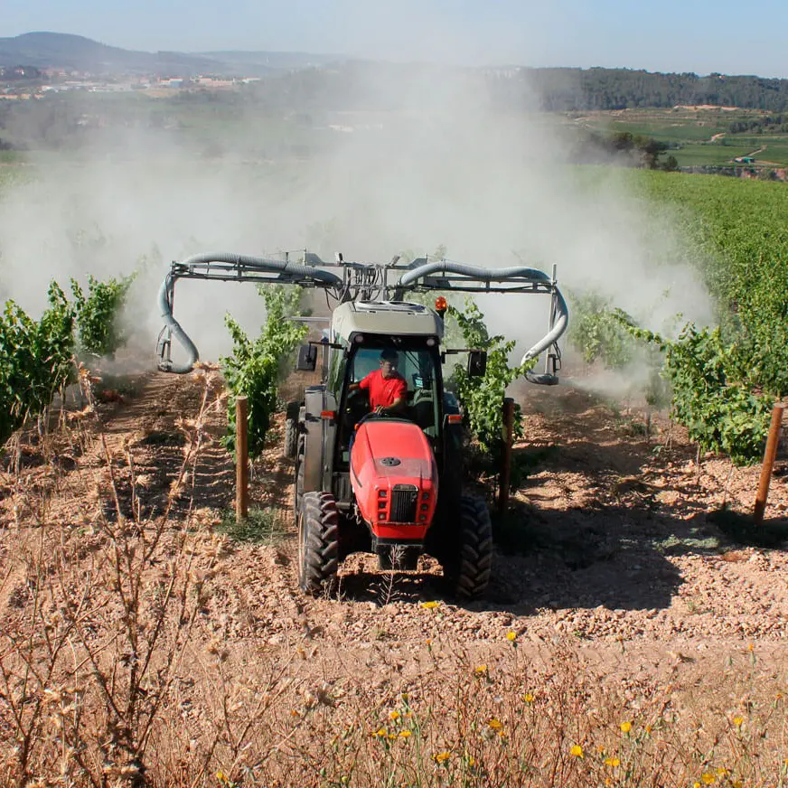 Zefir (Arrastrado): Nebulizador de técnica avanzada para viñedos. Ofrece gran robustez, distribución eficaz y uniforme, con máxima penetración y mínima deriva en el tratamiento.